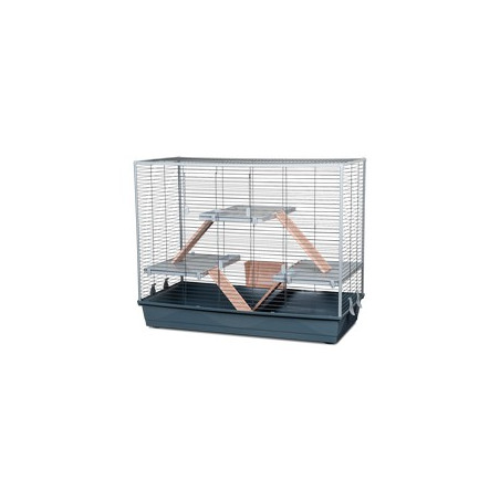 Producto ECO. Esta jaula es ideal para conejos. Fabricada con el sistema de tiras de Voltrega, un sistema de montaje rápido, para jaulas desmontables que permite ahorrar en almacenaje y transporte debido al volumen reducido de su embalaje. Incluye pisos y escaleras para dar mas espacio al conejo y para facilitarle el ejercicio, también contiene tolva porta heno. Fabricada en España utilizando alambre recubierto con pintura epoxi sin plomo y usando solo plástico polipropileno reciclado, materias primas no tóxicas para tu mascota. Disponemos de piezas de recambio y accesorios para completar la jaula. Para mejorar la salud y confort de la mascota, VOLTREGA rECOmienda la limpieza de la jaula con productos especializados una vez por semana, preferiblemente con Zerobakter. Voltrega también te ofrece muchos complementos para tu jaula así como juguetes y snacks para tu mascota.